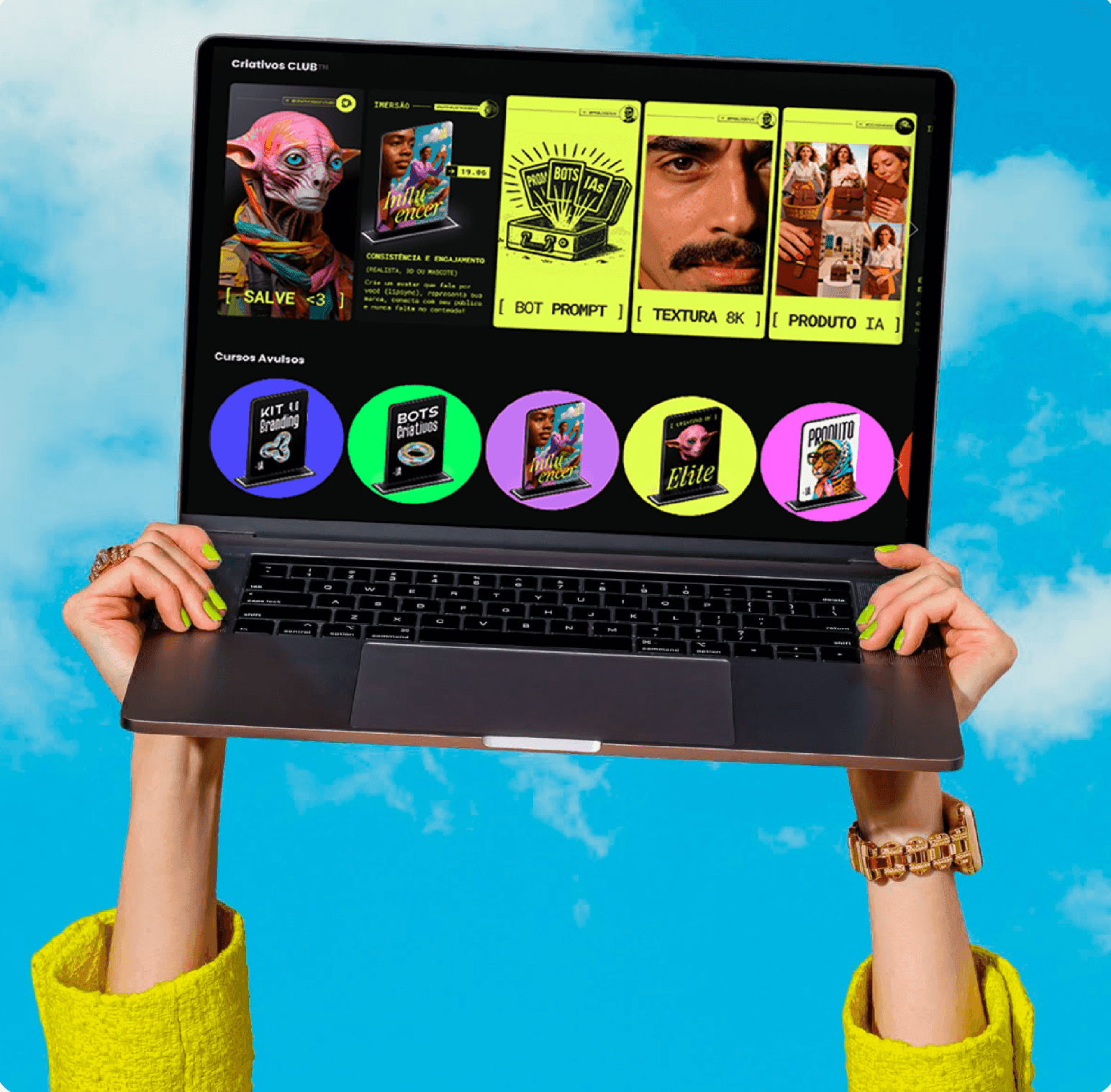 Você desbloqueia acesso imediato a todos os cursos e ferramentas que já criamos: IA criativa, branding, design, conteúdo e muito mais.